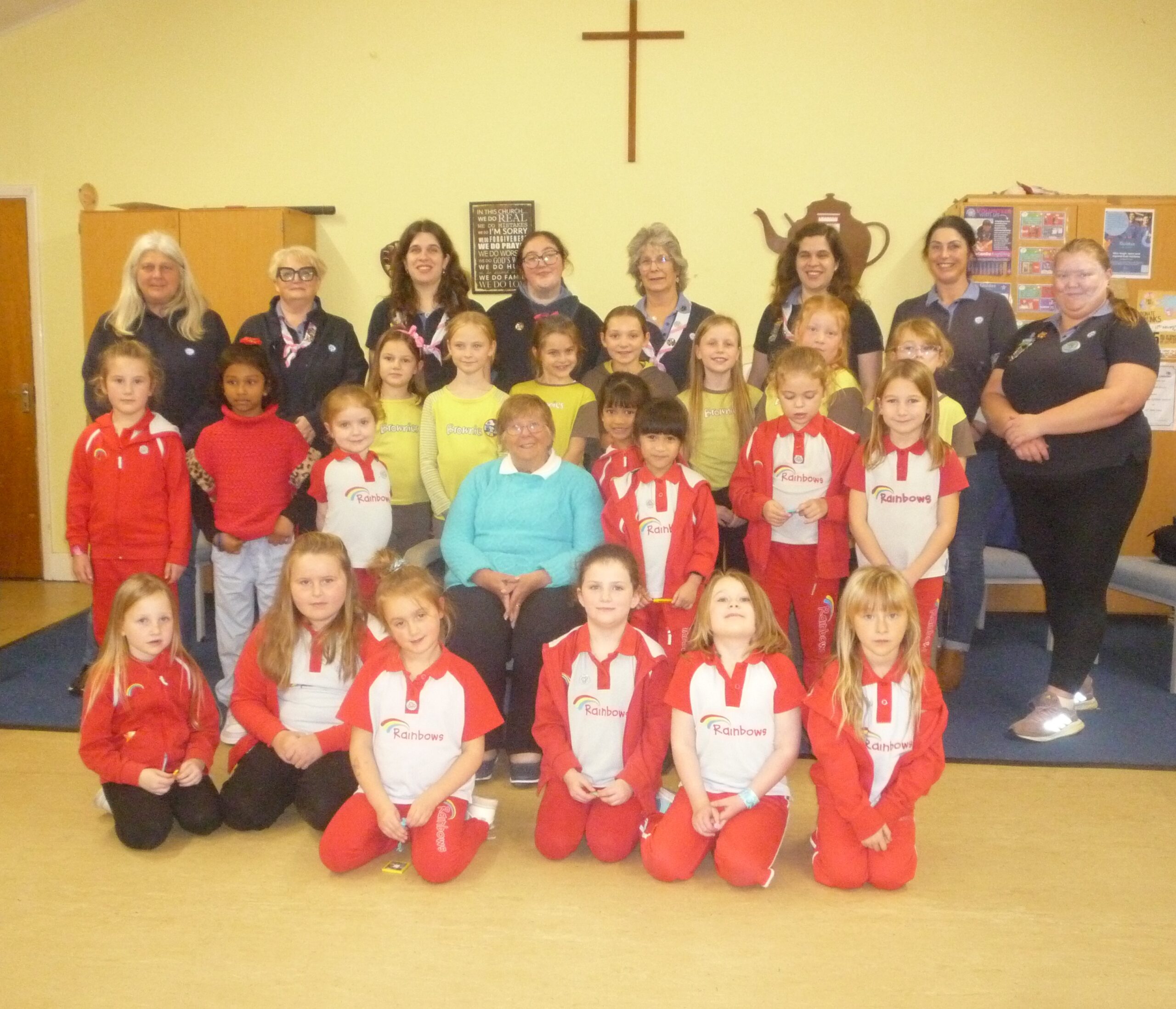 One of the original Brownies, Jean Tayler (sic) who joined in1955 was Guest of Honour at the celebrations. Jean said,” I really enjoyed my time as a Brownie. We spent lots of time enjoying the outdoors and I learned life skills which have helped me throughout. I especially remember learning how to darn, but I don’t do much darning now!.”