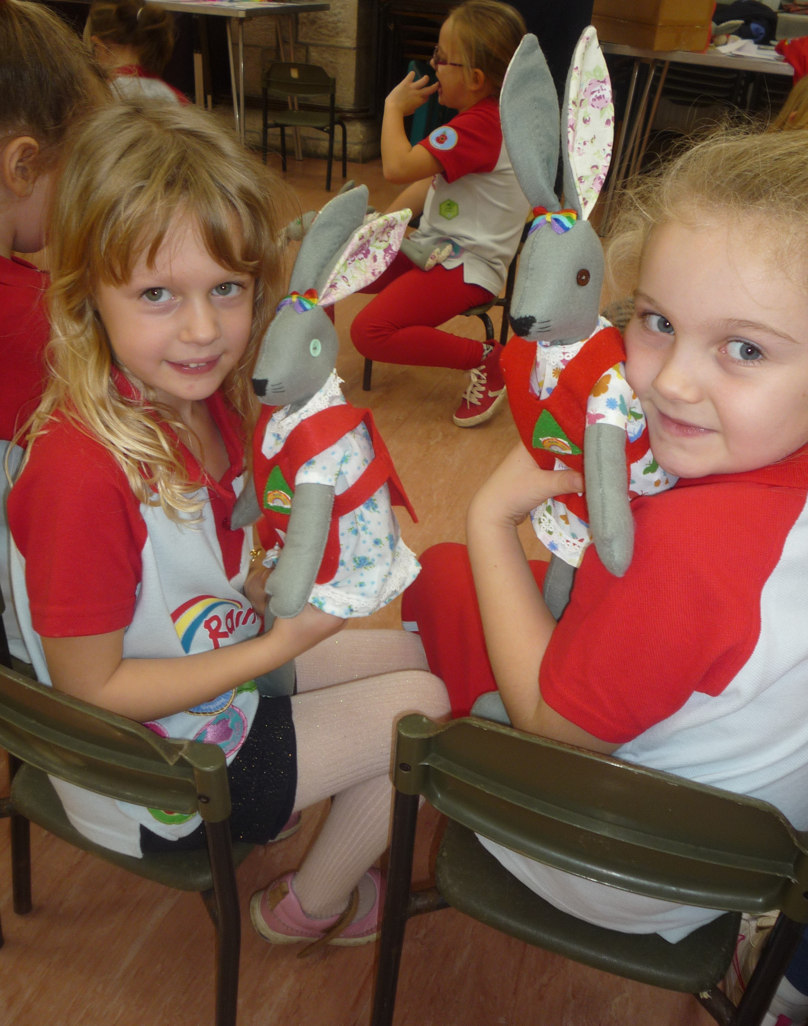To celebrate the 30 years a party for all the present members, Helen’s family and friends of the unit was held. All those attending enjoyed games, some played were based on those played at the first meetings, plus today’s Rainbows were informed about past uniforms and activities. Cakes were enjoyed and all those present were presented with Rainbow Rabbits which were the first mascots for Rainbows in the 1980s. All the rabbits given out at the party were hand-made by Helen.