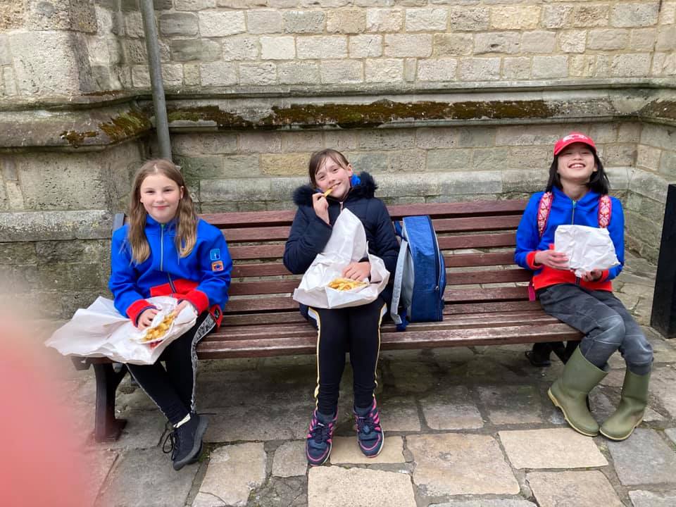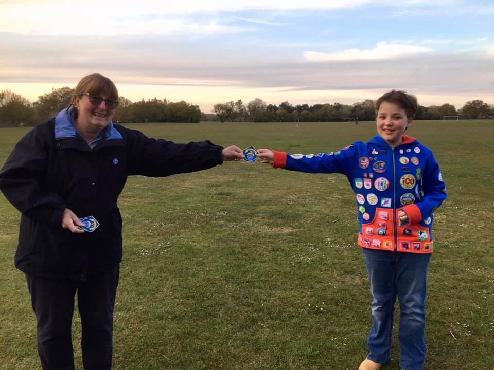 1st Carisbrooke Guides have been very active with visits to the park and forest, collecting rubbish to help the environment, enjoying an evening looking at their local town centre (ending with chips in the town square) and having badges presented, (From a distance)