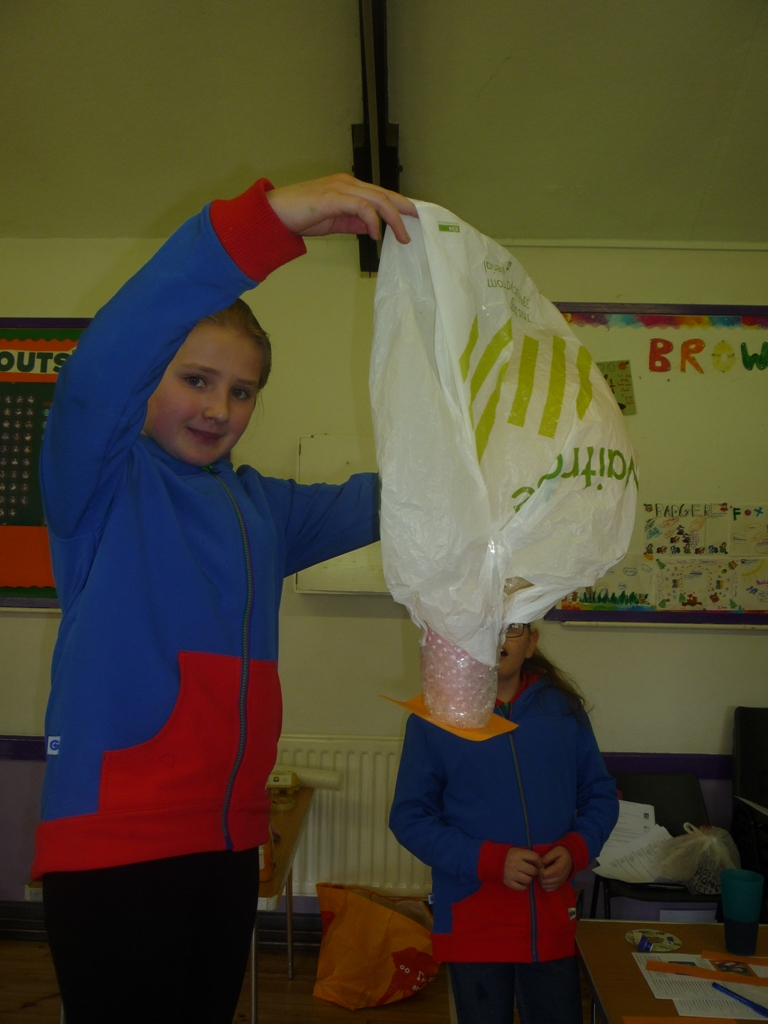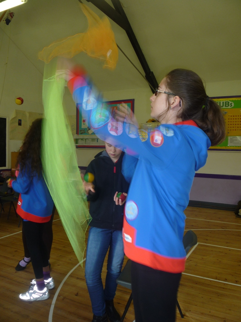 Challenges included building a hovercraft and unravelling the mystery of a moving chain for the Science Badge, Learning Circus Skills for a badge of that name and undertaking some handy craft work and sewing for a Sewing Challenge.