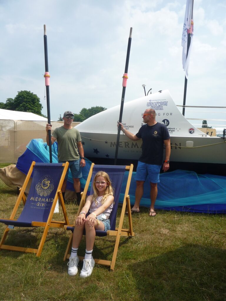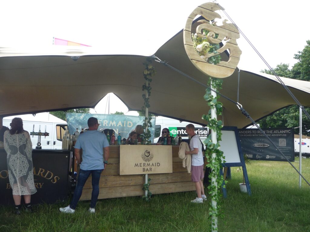 One performer enjoying Minghella Ice Cream was Roy Stride frontman for ‘Scouting For Girls’. Following his performance on Saturday afternoon he tucked into the ice cream and told us that he could thoroughly recommend it. Also in this quiet quarter was a performance stage. Sponsored by Mermaid Gin, this stage hosted up and coming artistes including some from Platform One, the Island’s Music College. Mermaid was also a favourite drink with festival goers enjoying their Gins, Vodka and now the latest edition to the Mermaid collection, Rum, which is enhanced with locally produced honey produced by bees from the hives near the distillery. Along from the Mermaid Bar was the boat which will be rowed by the Mermaid team In the Atlantic Rowing Challenge, which will start at the end of this year.
