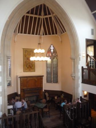 On the outside the stonework has been thoroughly cleaned and re-pointed while inside many features have been retained, including stained –glass windows. Floorspace on the upper level has been increased in order to accommodate diners.