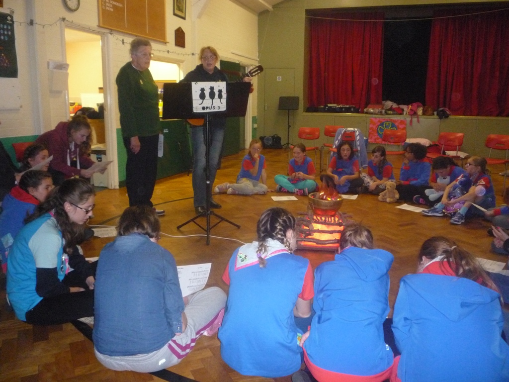Dozens of Guides and their leaders attended and the money raised at this event, by sponsorship of singing 100 songs, was divided between Macmillan IW and the Guides own units. Songs were led by a group of Girlguiding IW leaders.