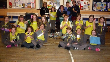 Gill Mulcahy from Amey met with the Brownies and showed examples of just what is thrown away, what can be recycled now, how the landfill sites are running out of space, how to use the different bins/containers issued by Amey as well as discussing how the environment can be helped by more recycling.