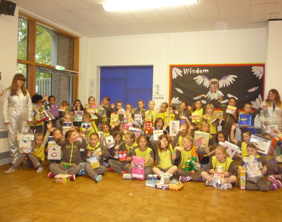 All the girls made their own version of an alien from clean scrap materials which would normally be deposited in the recycling bin. These included CDs, wrapping paper, off-cuts of fabric and washed plastic bottles. These creations were very diverse and there were some outstanding designs from perhaps would-be designers or engineers of the future.