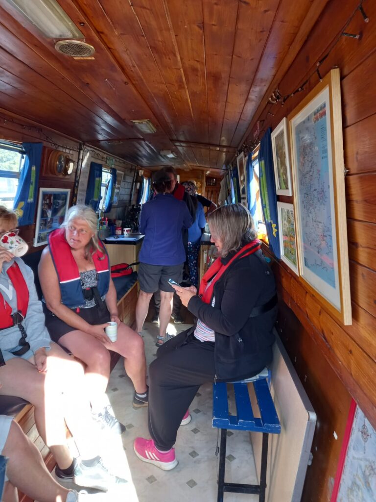 Angela said,” We travelled from the Island to Aldermaston then on the boat to Newbury and back again. There were 9 Island leaders on board including myself. We travelled up to Aldermaston on Friday and spent the night moored up. Next morning, we set out for Newbury, stopping for lunch on board, on the way. We enjoyed a meal out in Newbury on Saturday evening, then another night on the boat, before travelling back to Aldermaston Sunday morning, again stopping for lunch on board on the way.