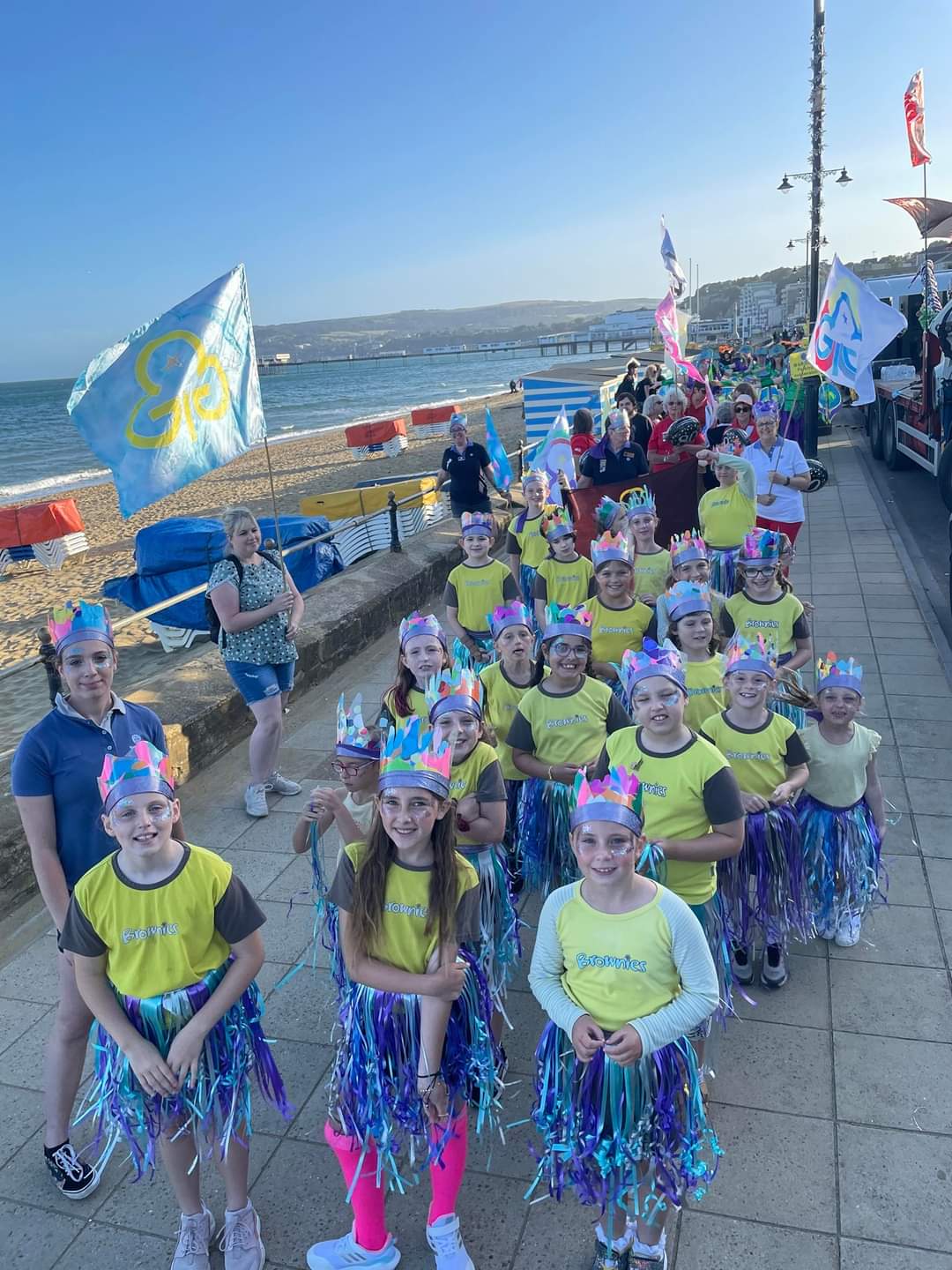 Following links with the IW Volunteer Centre and Shademakers based in Ryde, 4th Sandown Brownies and their leaders have been in a carnival mood. The leaders made carnival flags, using the Batik technique, at workshops held by the Isle of Wight Volunteer Centre, over several evenings, throughout the Summer months.