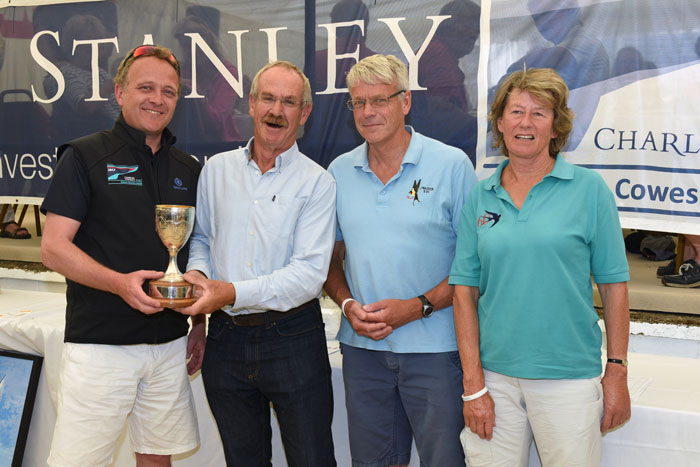 Cowes Sea Cadets (TS Osborne) was the chosen charity of the event. With cadets helping with the running of the regatta they were rewarded with a donation of £1,505 at the prizegiving. This had been collected during the week or given by some competitors when entering with the enticement of a magnum of Champagne as a prize. This was won by Alan Perry.