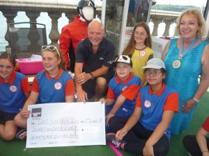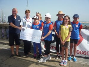 This presentation was made to members of Girlguiding IW by Brian Marriott a Trustee of WightAid during Lendy Cowes Week. The £772 was raised by those taking part in the Red Funnel Bicycle Island Challenge during June when Girlguiding IW was selected by Bicycle Island as their charity to support.