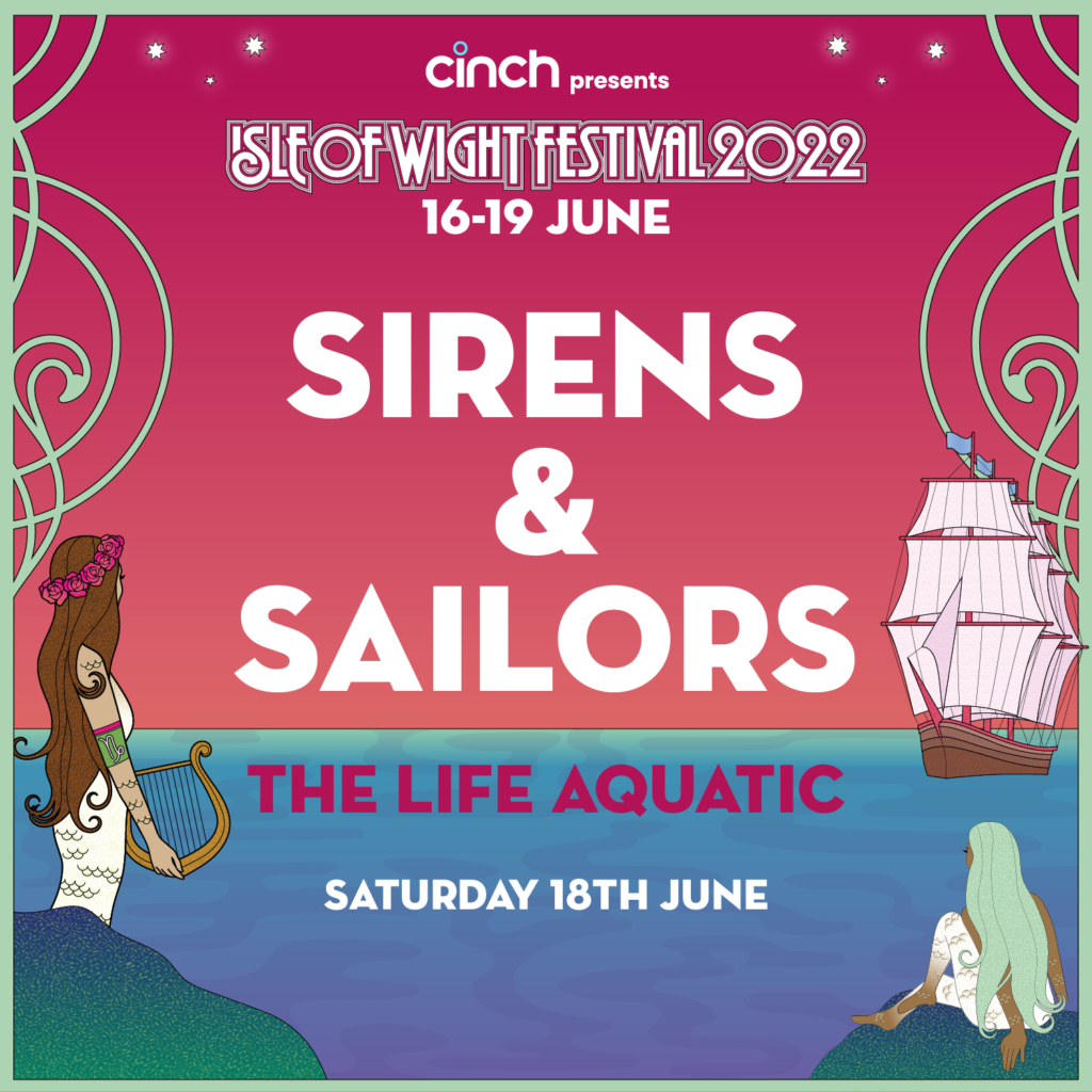 This year’s IW Festival will see Seaclose Park, Newport transformed into a marine paradise filled with mythical creatures of the deep. From elusive mermaids and King Neptunes to fabled shanty-singing sailors all there as Cinch presents The Isle of Wight Festival with a theme for the 2022 event of: Sirens & Sailors – the Life Aquatic.