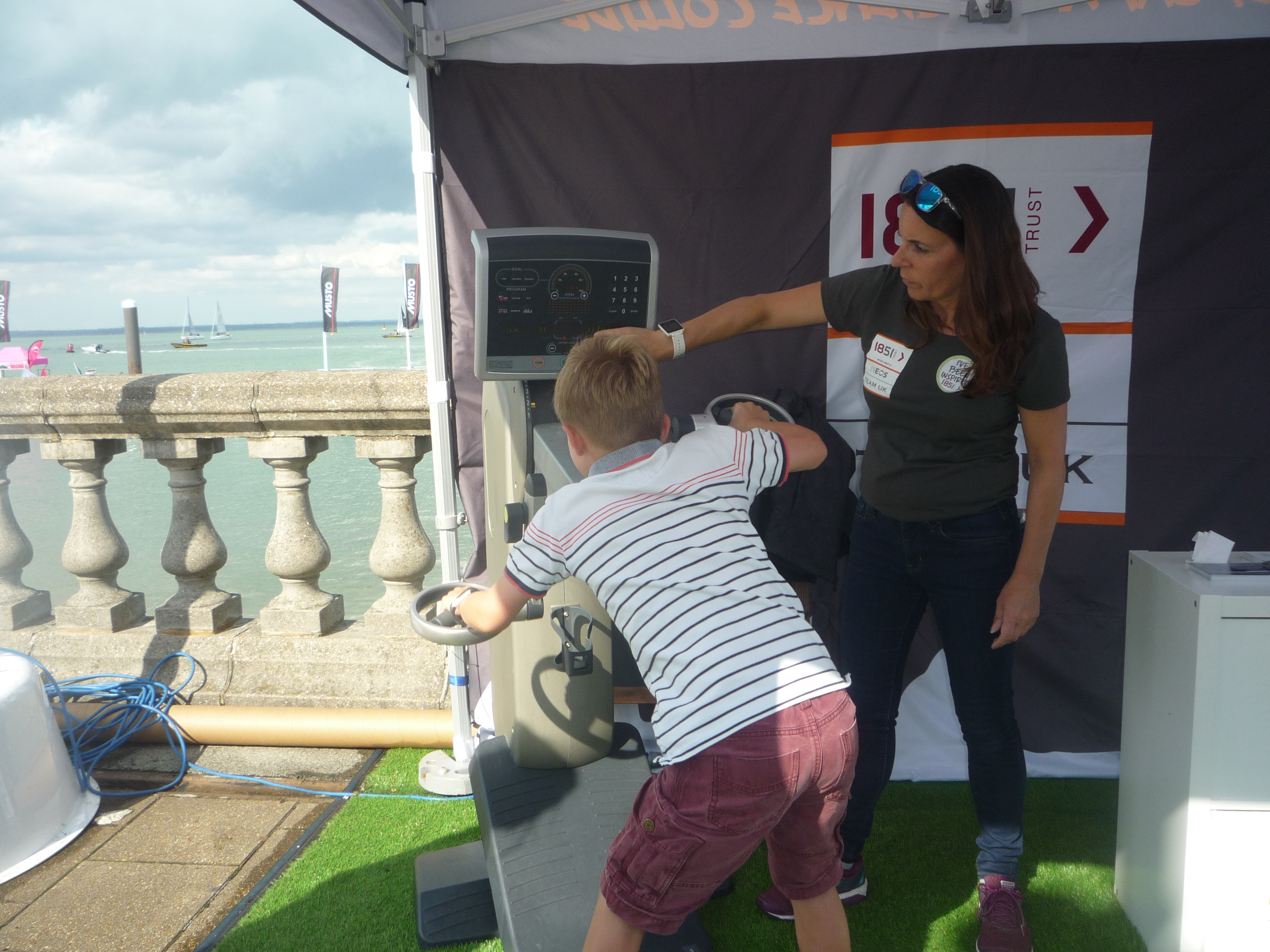 Following the bad weather on Saturday (10th August), sailing finally got underway on Sunday as did several activities for Family Day and the stands and bars in the Cowes Week Village on Cowes Parade saw plenty of customers. Family oriented activities from the 1851 Trust stand on Cowes Parade included a sailing inspired treasure hunt around Cowes and a grinding challenge.