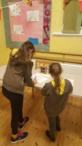 Brownies undertaking activities during ‘Bring a Friend’ meeting: