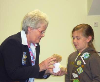 Two Brownies were presented with special awards- Certificates of Fortitude. Both girls Kohana Reid (9) of 10th Newport Brownies and Emily Mills (8) of Brighstone Brownies had saved lives by phoning 999 when relatives had collapsed. Both had used 1st Aid knowledge and kept calm in difficult situations.