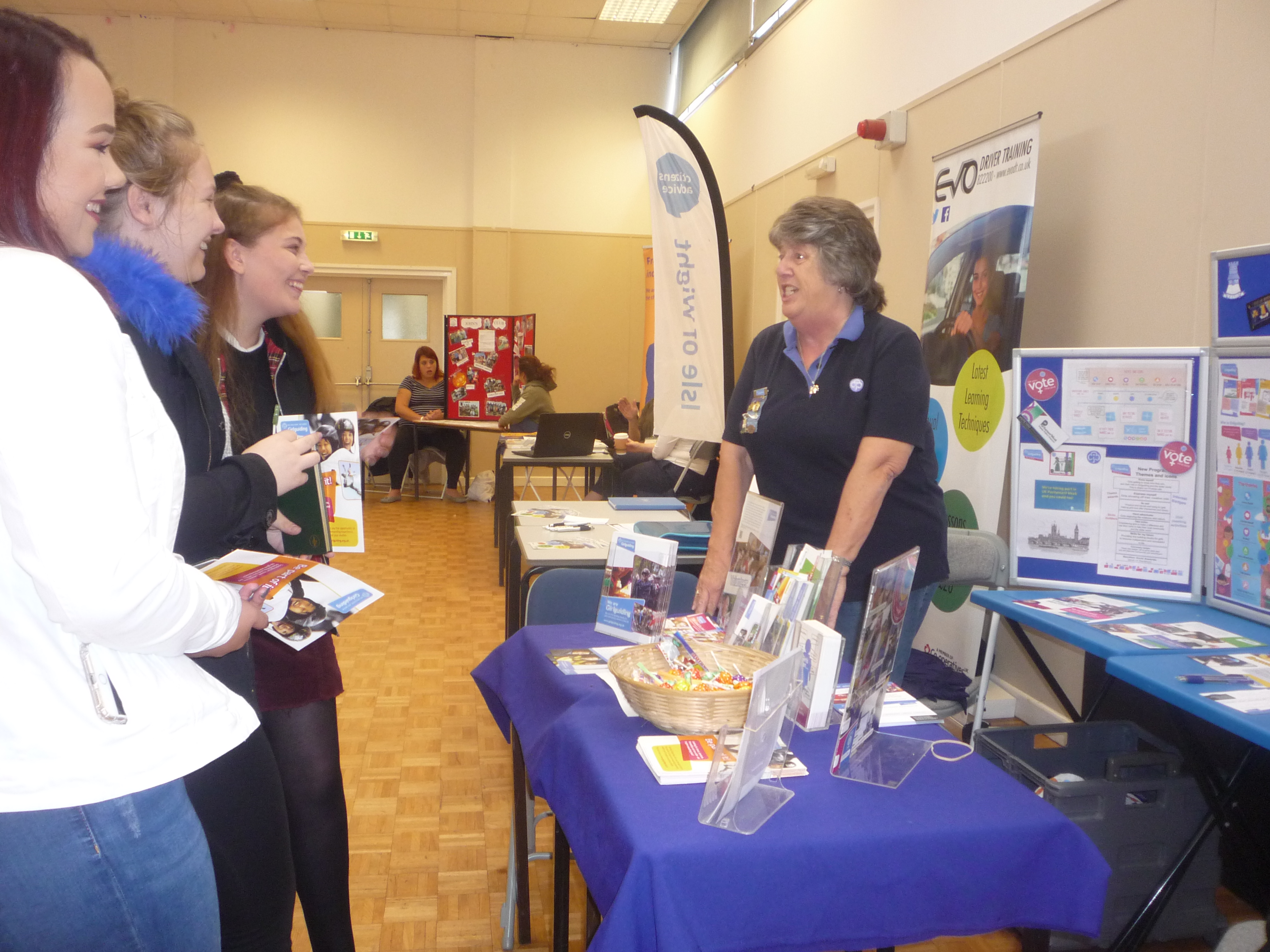 Members of Girlguiding IW have attended a two- day Freshers’ Fair at IW College. Dozens of students and College staff attended with several showing real interest in Girlguiding by visiting the colourful stand which was filled with information.