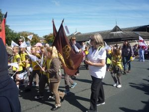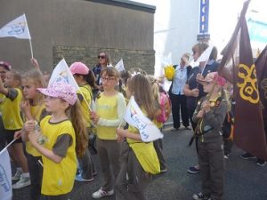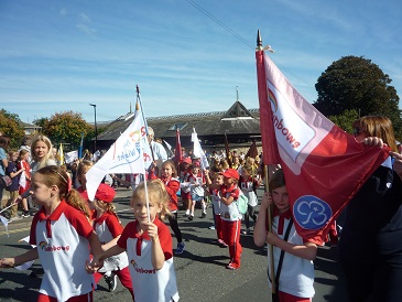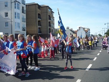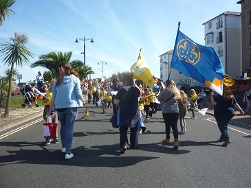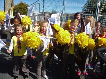 With flags flying and banners aloft all the girls, from the youngest Rainbow to members of the Senior Section together with leaders walked the winding route. Thousands of spectators lined the route and the parade also included carnival floats and marching bands.