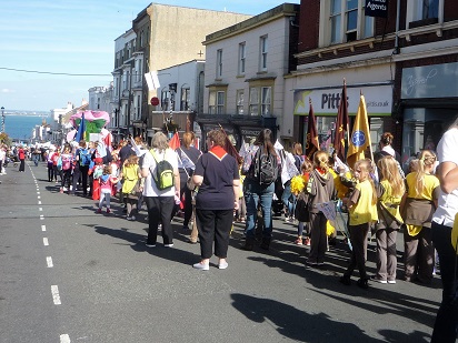 In warm and sunny weather the long parade of Isle of Wight organisations wound its way through Ryde from Dover Street to the Simeon Street Recreation Ground via Ryde High Street, Union Street and the Esplanade.