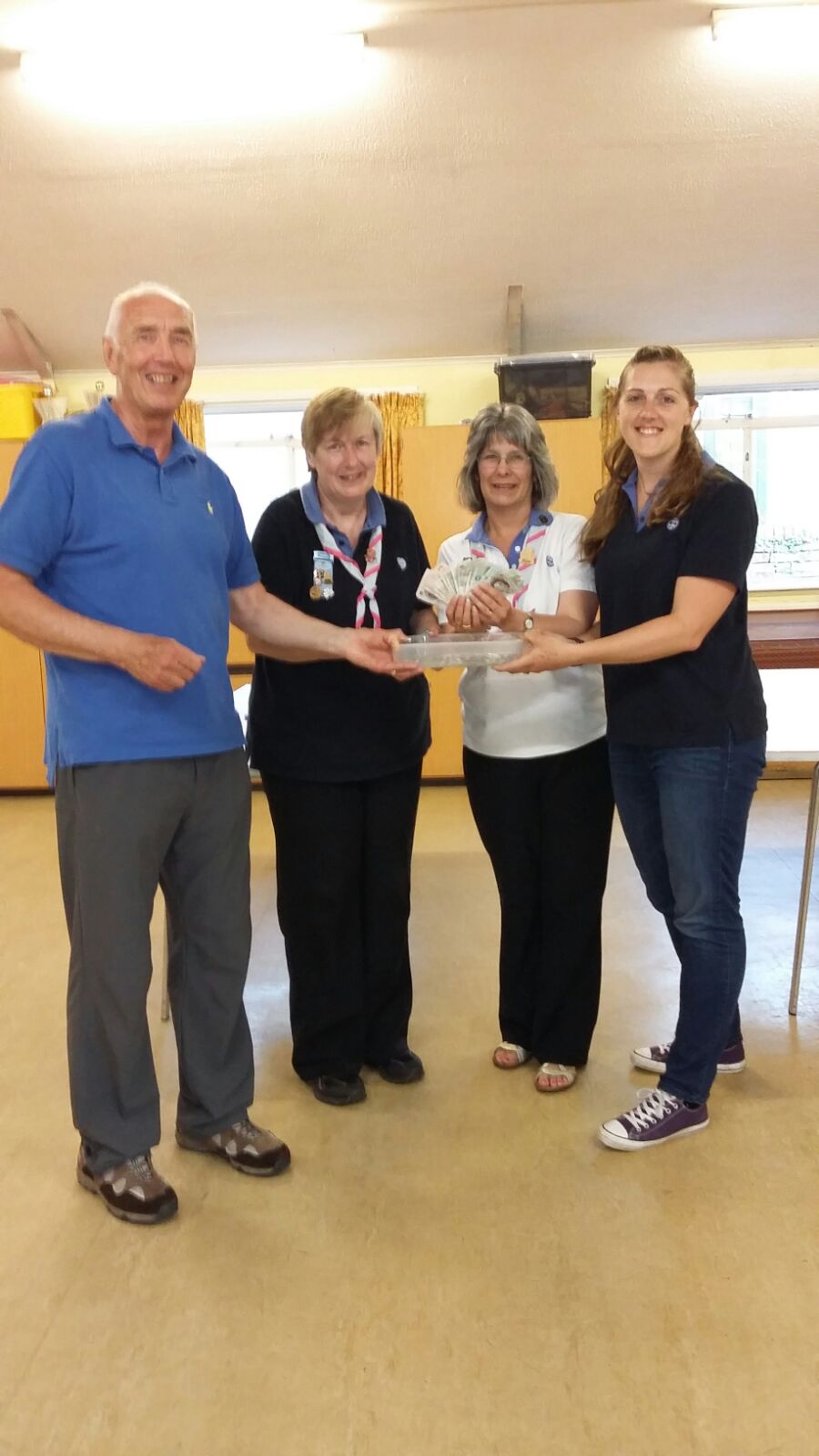 Photo left to right – Harry Walker (St John’s Church), accepting the raised funds from Janet Corbett (11th Newport Guides), Fliss Harris (10th Newport Brownies) and Carla Oliver (Carisbrooke Rangers).