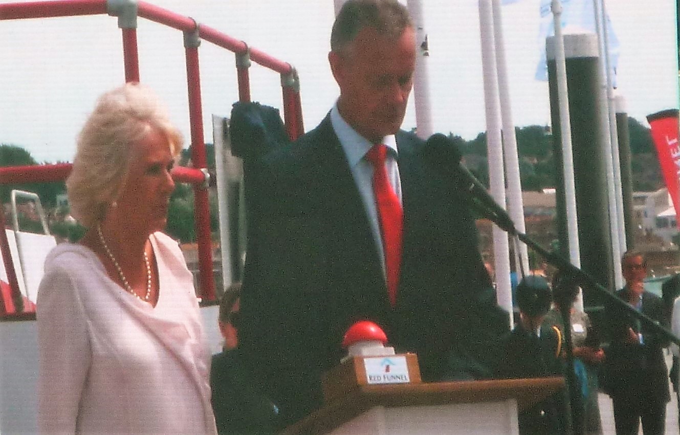The Right Reverend Christopher Foster Bishop of Portsmouth blessed the new ship before HRH The Duchess of Cornwall broke a bottle of Isle of Wight produced Rosemary Vineyard Sparkling Wine  on Red Jet 7’s bow and unveiled a commemorative plaque.