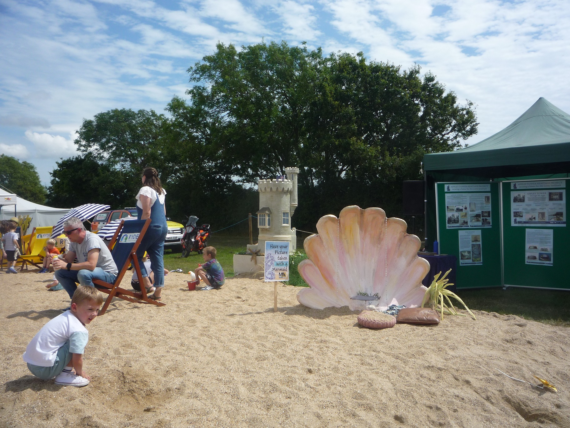 Trade stands and food/drink and ice cream outlets had long queues for most of the two days and the ever popular funfair and games were kept busy. There was music, art and even a beach encouraging people to visit and support the Appley Tower scheme.