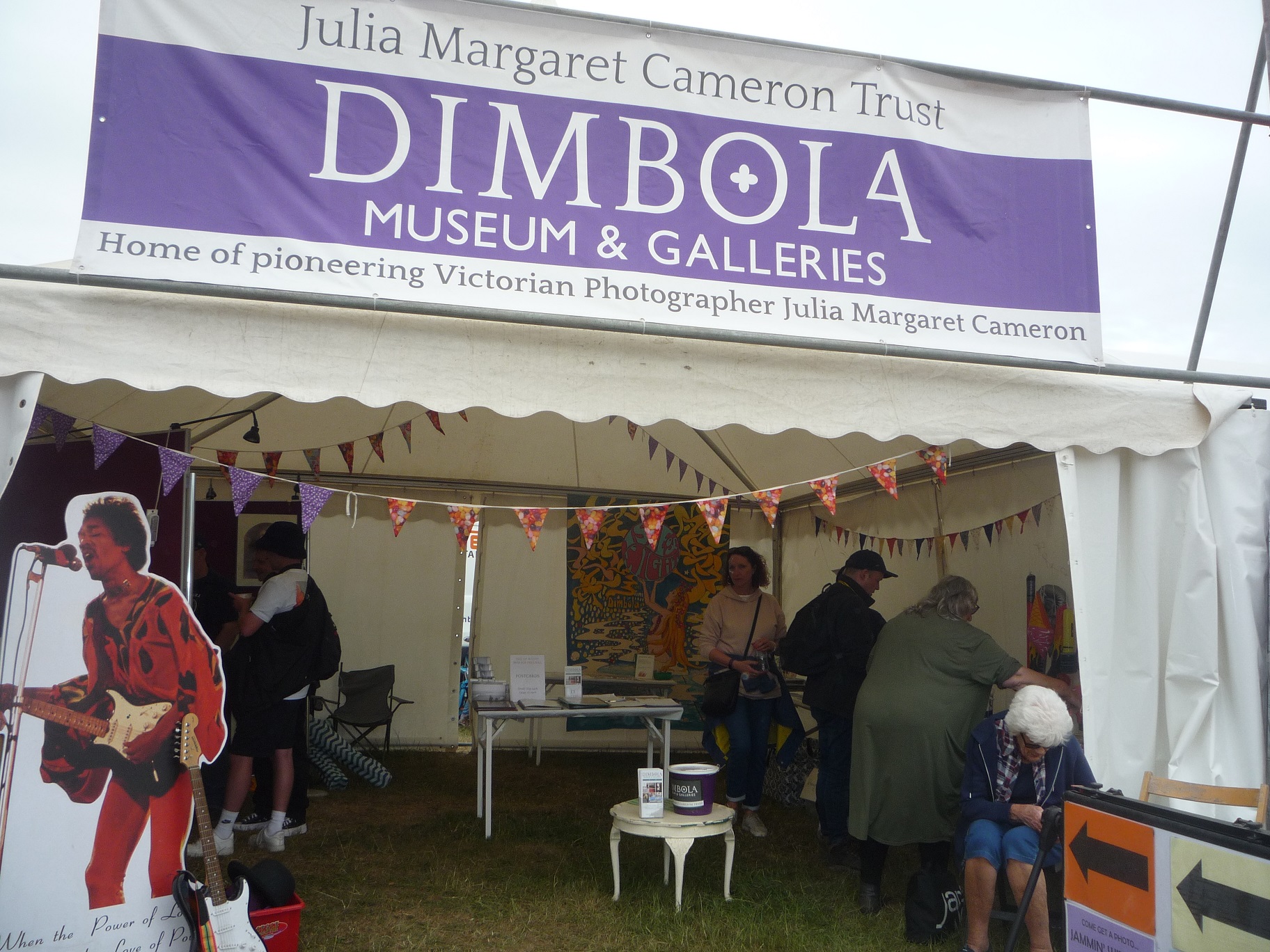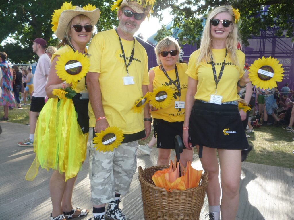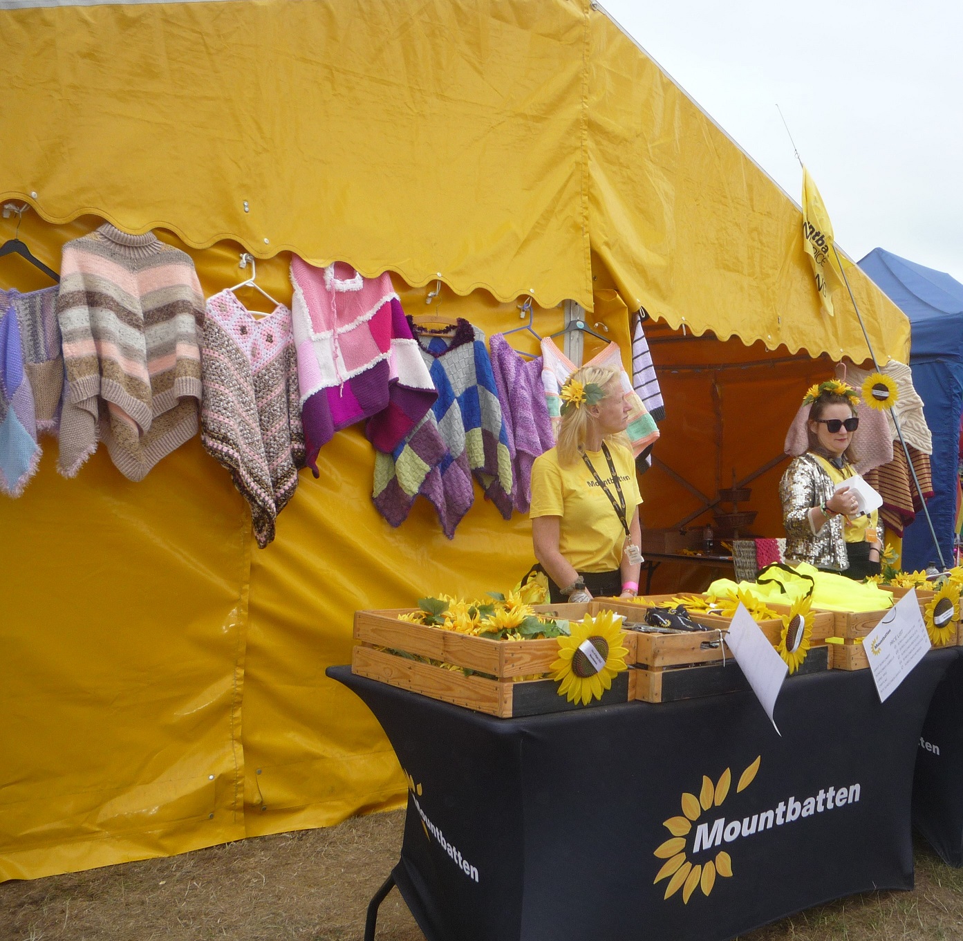 Local charities had stands in Strawberry Fields. Amongst these was the ever-popular Mountbatten with their sunflowers and, this year for the first time, knitted ponchos made by the knit and natter group that regularly meet at Mountbatten Hospice. The Mountbatten volunteers also traversed the whole site selling hundreds of their colourful sunflowers for the charity. Another local charity in this area was Dimbola, with visitors to the stand viewing the photos of the 1970 IW Festival held at Freshwater and showing much interest in the work of Julia Margaret Cameron.