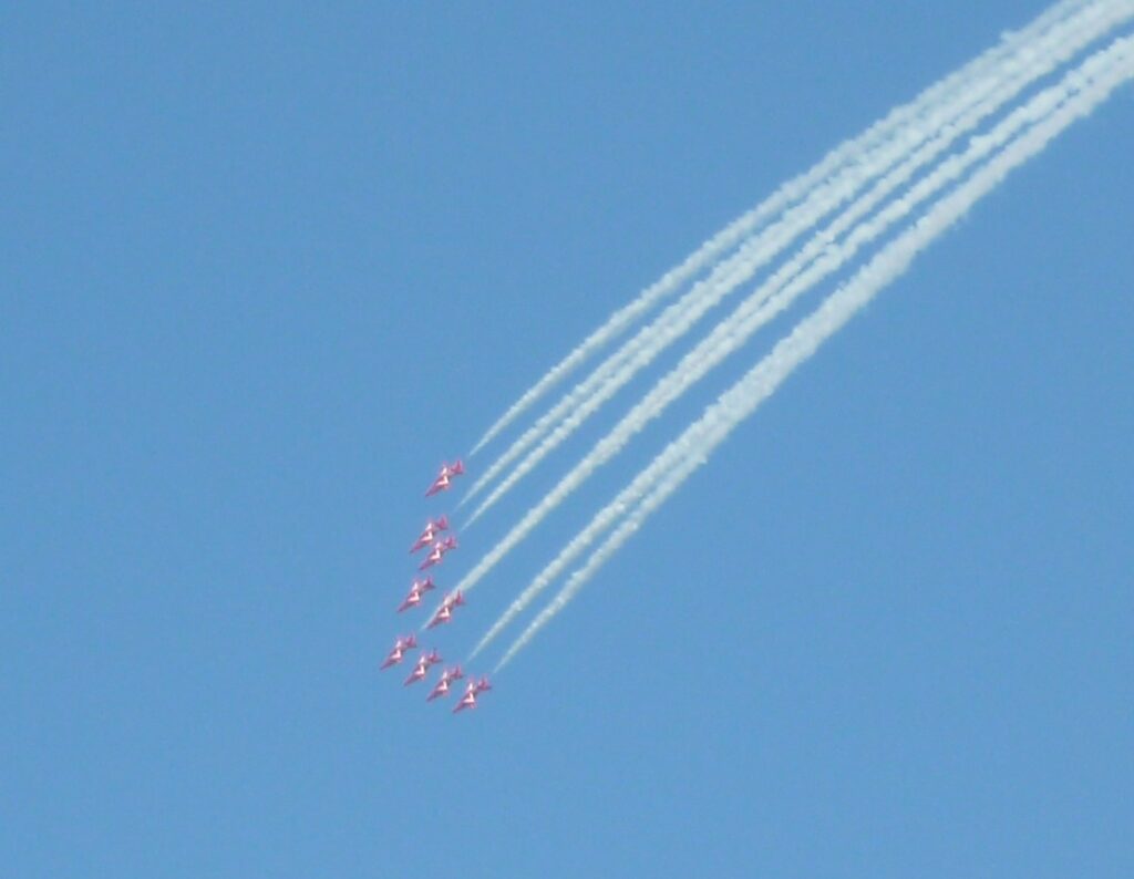 Their distinctive bright red and white livery glistening in the sunlight they began a 15 minute display before departing with a low fly past in formation over Newport.
