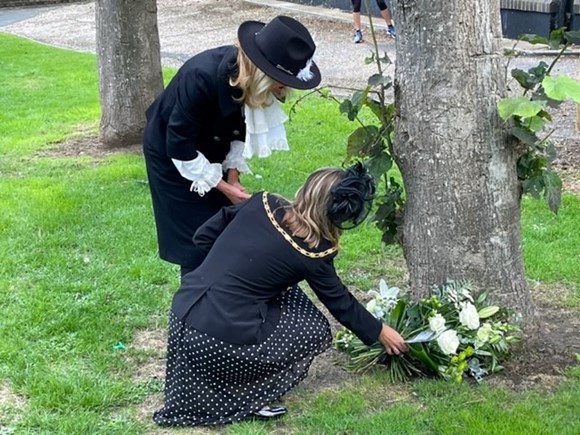 Floral tributes have been laid by IW High Sheriff, Kay Marriott JP and by the Chairman of the Isle of Wight Council, Councillor Claire Critchison as a mark of respect to Her Late Majesty, The Queen.