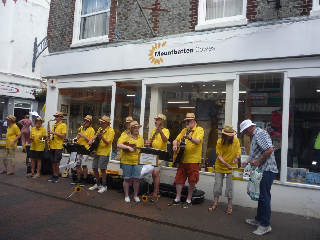 Stands offering a great variety of goods, food outlets and bars were along The Parade. Island made and produced goods were housed in one of the larger marquees and a charming wine garden was the venue for Uncommon which sells wine in a can! Through Cowes High Street there was entertainment including a group of Mountbatten entertainers outside the charity shop.