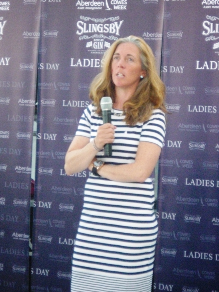 Kate Johnson on behalf of Cowes Week Ltd. paid tribute to all the nominees for the Ladies Day Trophy and welcomed guests, including past winners to the presentation. For Ladies Day it had been proposed that ladies should wear the traditional navy and white stripes. Those from The Magenta Project ,a number of whom had been Brownies, certainly joined in this idea with enthusiasm.