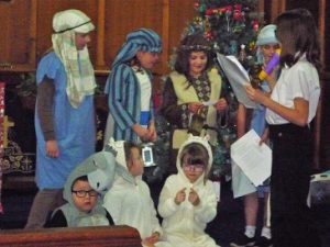 Costumes for the Nativity were provided or made by Brownie leaders and parents and the principal organiser of the event was Brownie Leader Karen Bull. Karen said that she would like to thank the parents who had helped in any way especially those who had helped with the costumes.