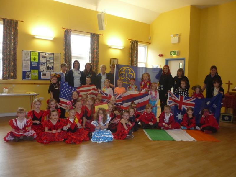 Carol Firth, Needles Section Commissioner, welcomed all the Rainbows who were dressed in costumes representing the chosen countries of USA, Australia, Spain and Ireland. Carol explained that around the World Girlguiding has10 million members in over 140 countries.