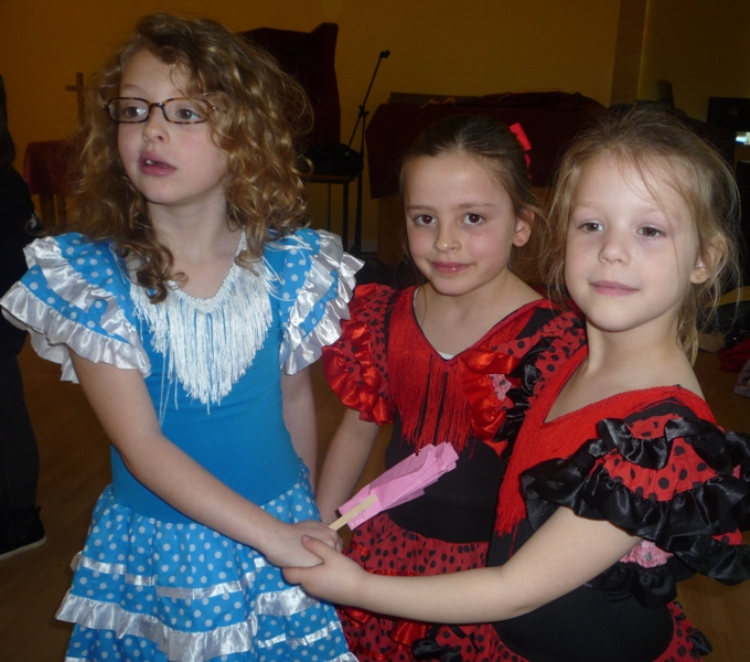 Learning about other countries and their flags proved of great interest to the Rainbows and the selection of costumes the girls chose to wear included: Spanish Flamenco, US Native American, Australian Bushgirl and US Gala Queen.