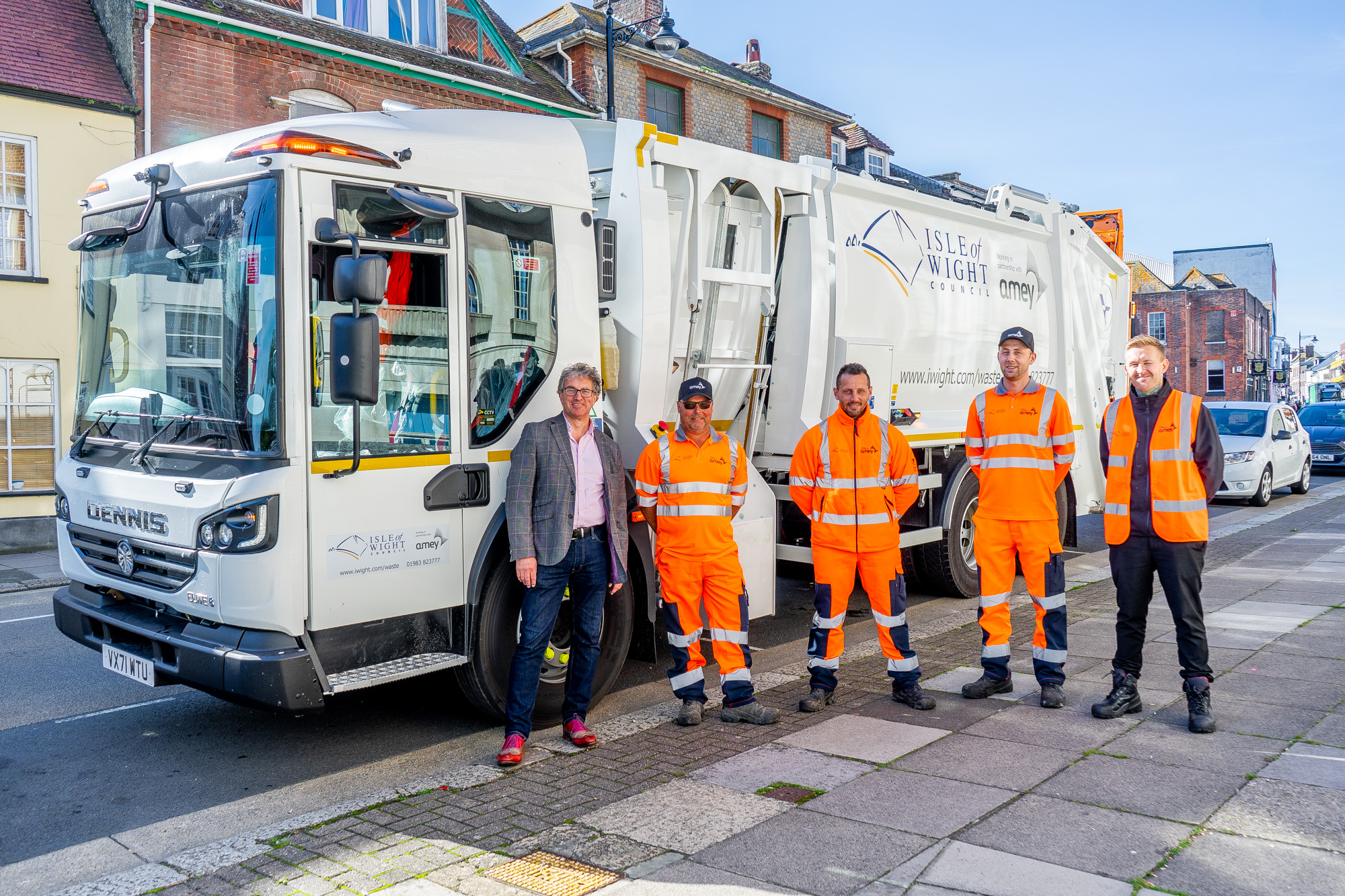 Boasting enhanced engine efficiency and greater safety for pedestrians and other road users, the seven vehicles represent a £1.4 million investment into the Island’s waste collection service by the Isle of Wight Council and its waste contractor, Amey.