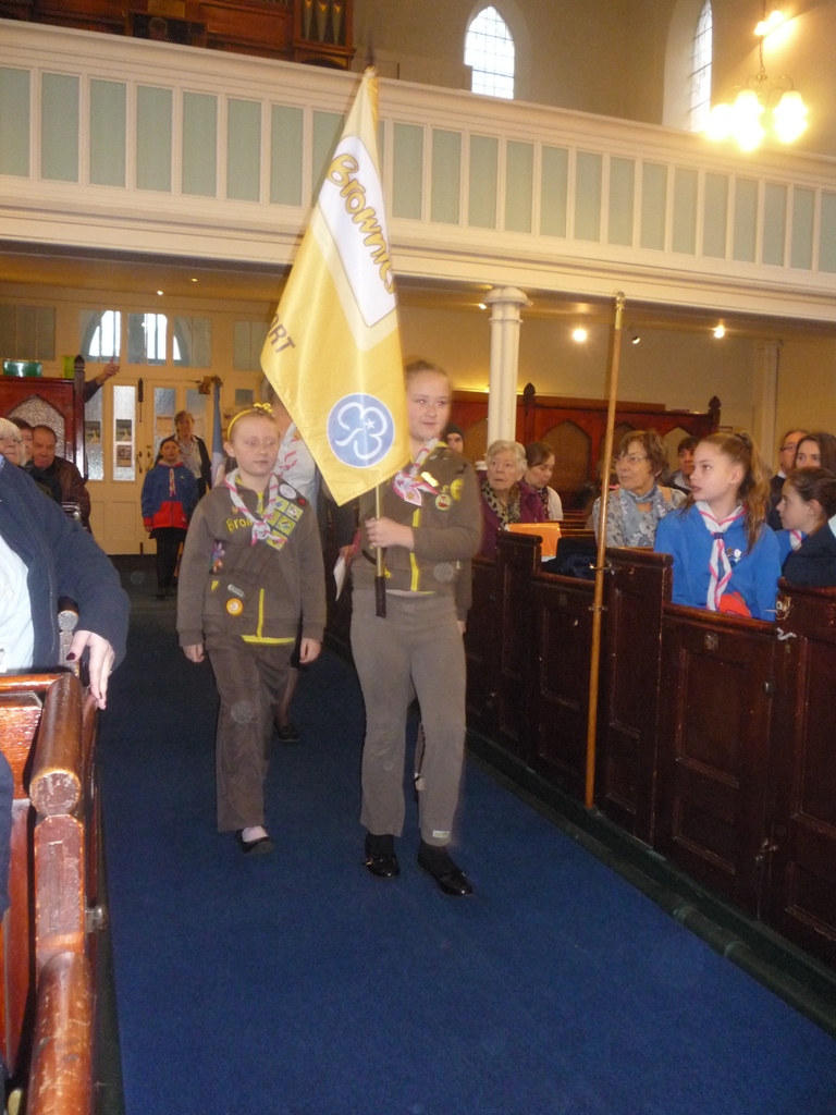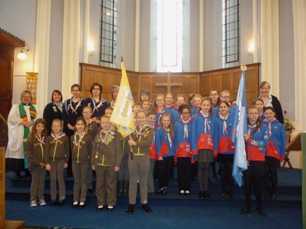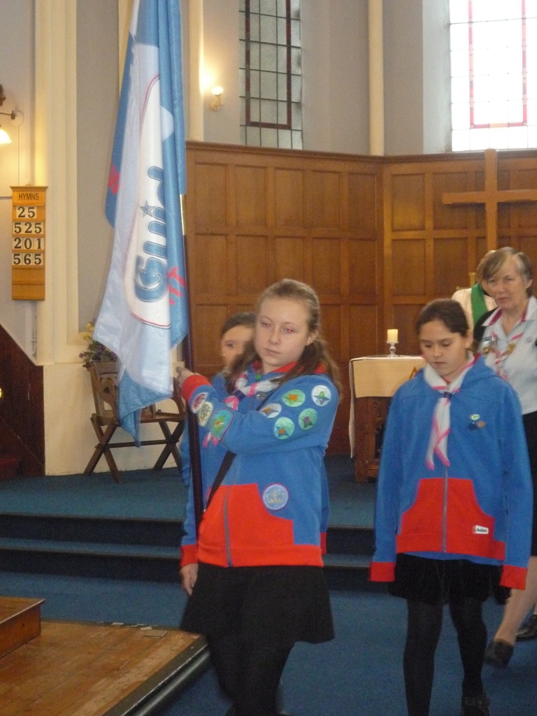 Brownies, Guides and leaders read poems and lessons and all females in the congregation who are Girlguiding members or had taken the Girlguiding Promise in the past were invited to renew their Girlguiding Promise.