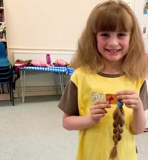 Summer-Daisy Cox (7) a Brownie with the 11th Newport Unit has had her very long hair cut off and it will be sent to the Little Princess Trust which provides real hair wigs to children and young people with hair loss and funds vital research into childhood cancer.