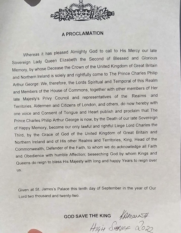 Following a centuries’ old tradition, there were also local Proclamations to announce the accession to the throne of our new monarch.