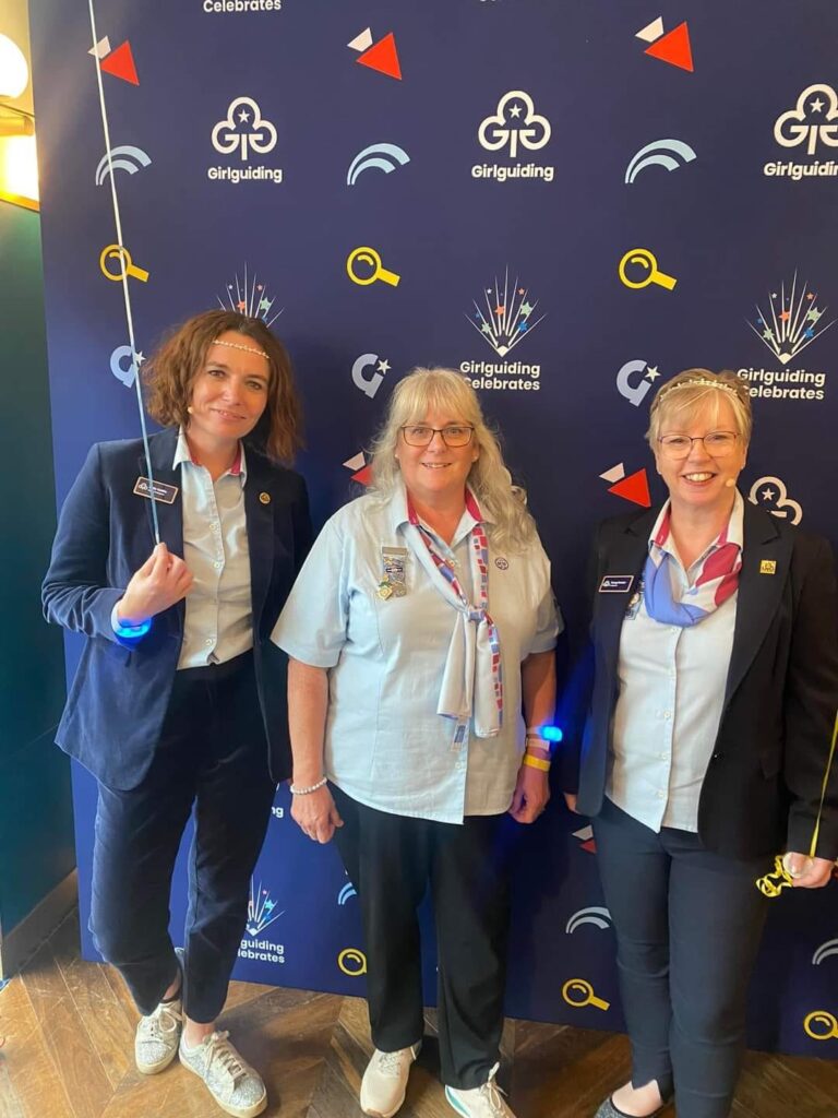 Angela (Centre) is pictured at the Girlguiding event with Chief Guide Tracy Foster (R) and Deputy Chief Guide Sally Kettle.