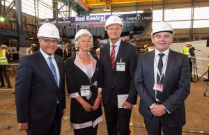 At a keel laying ceremony Red Funnel announced that its new £10m freight ship will be called Red Kestrel. This keel-laying took place at Cammell Laird’s yard in Birkenhead and was witnessed by some 300 invited guests and the shipyard is scheduled to deliver the vessel in spring 2019.