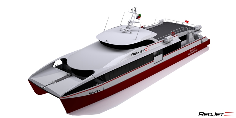 Red Jet 6, Red Funnel’s largest ever Hi-Speed passenger ferry is currently under construction at East Cowes. This £6m state of the art vessel is being built by Shemara Refit LLP for delivery to Red Funnel in June 2016. Following this the vessel will be named in Cowes on 4 July 2016 and will enter service later that month.