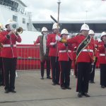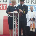 The Rev. Philip Hand undertook the official blessing of the ship whilst Karen George, wife of Red Funnel’s Chairman, Kevin George, had the honour of christening Red Kestrel. Together with the captain of the vessel Islander Ned Tutton they pressed the button which set off fireworks much to the surprise of the invited guests on the dockside at Ocean Terminal.