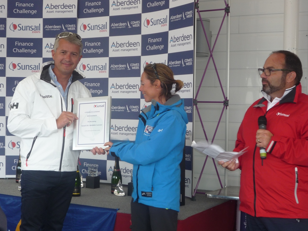 At the Sunsail prizegivings during the week there were several special events. On Wednesday General Manager Stuart Farquharson announced that the company had placed an order for 128 new boats-a real boost for the British Marine Industry. Rich Hurley the Commodore of the Deloitte Sailing Club was recognised as the 500,000th Sunsail customer. He was presented with a certificate and other gifts by Paralympics sailor Helena Lucas who is soon setting off to Rio.