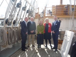 On board Tall Ship Kaskelot special guests Sir Robin Knox Johnston and Miranda Krestovnikoff performed the official opening for the 50th anniversary of the Southampton Boat Show this year sponsored by TheYachtMarket.com.