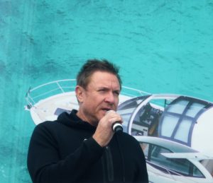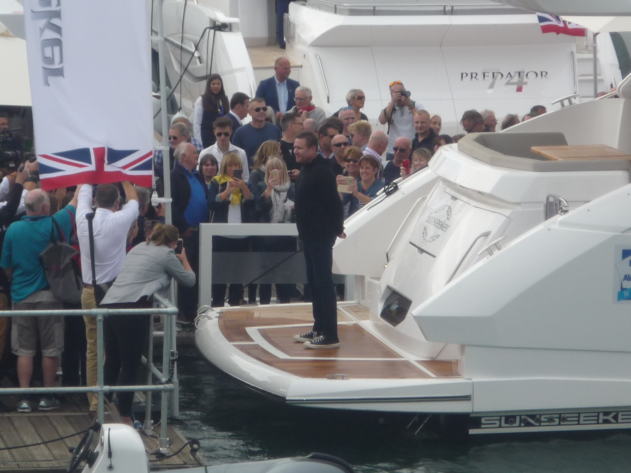 Simon Le Bon (Duran Duran) arrived at the show aboard a Sunseeker motor yacht in his role as an ambassador for the Blue Marine Foundation which is trying to rid the oceans of plastic. A sailing holiday when he was 10years old instilled his love of the sea hence his long- time support of a marine charity. He drew attention to the massive decline in fish stocks and the peril of plastic in our oceans. It was his task to open the “Blue Marine Exhibition” which is housed on the Sunseeker stand.