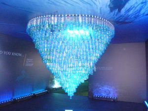 Chandelier made from plastic bottles in the Blue Marine Exhibition.