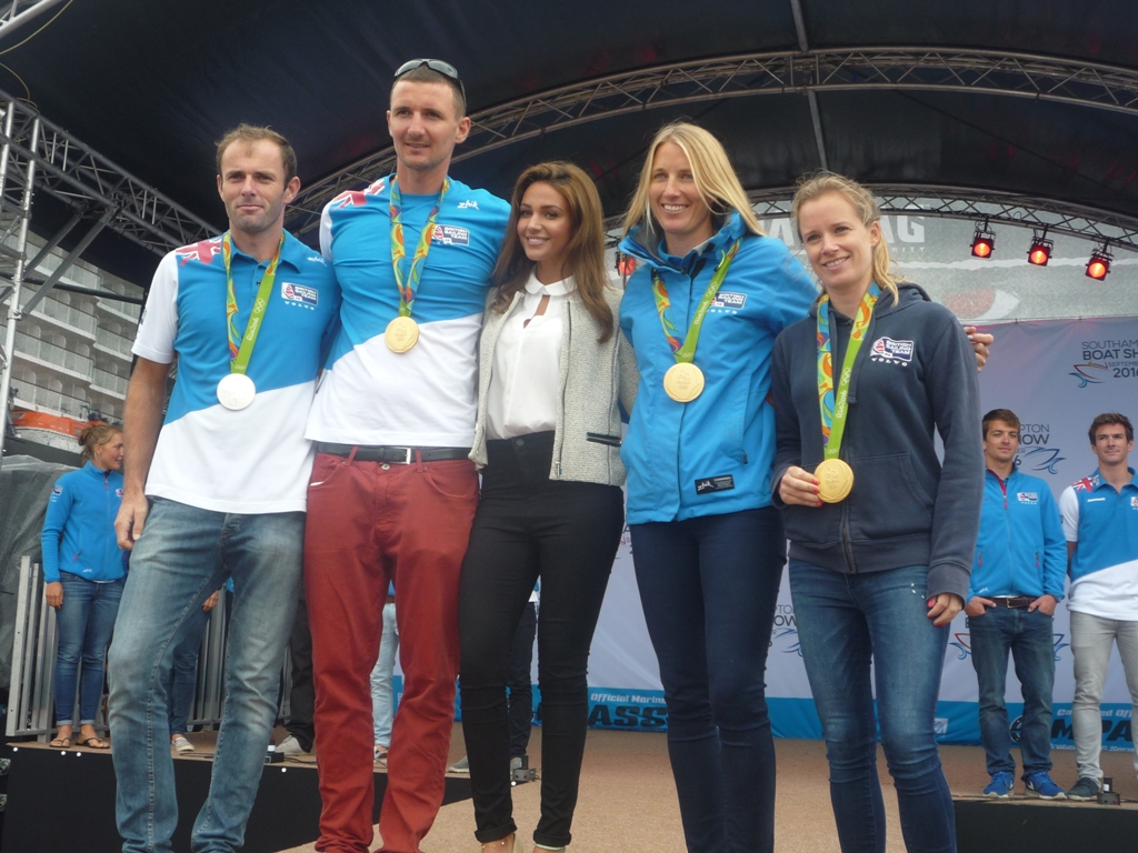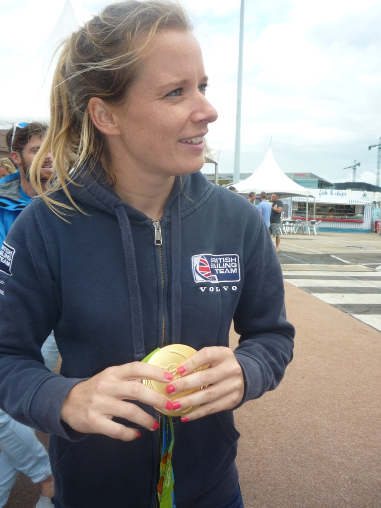 Saskia Clark and Hannah Mills, who won silver in the Women’s 470 in London, went one better in Rio but Saskia has now announced her retirement. It was a honour to see the gold medals up close and to confirm that, as reported on TV, they really are quite heavy. Unlike some years when winners’ names were engraved on the back of the medal, for Rio the names were engraved around the edge.