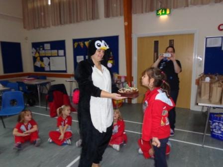 26 Rainbows and leaders stayed overnight at Brighstone Guide and Scout Hall. The weekend was penguin themed and everyone completed a penguin badge. Throughout the weekend the girls made several crafts including penguin clay models, sugar cube igloos, penguin paper crafts, making fairy wands and fairy cakes.