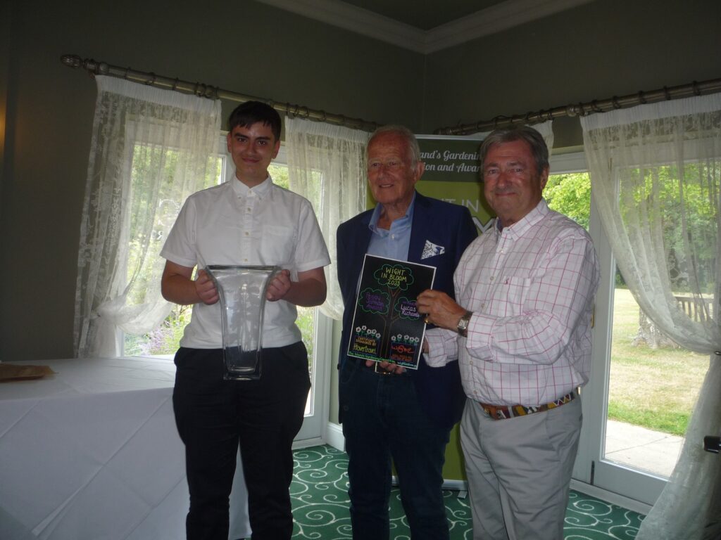 It was with great pleasure therefore that Alan presented the Peggy Jarman Trophy for this year’s winner of Wight In Bloom to 16 year old Lucas Richards. Peggy’s son Terry assisted with the presentation.