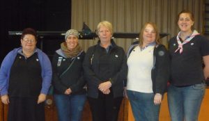 As part of the celebrations four leaders were presented with Awards by Island Commissioner Shirley Saunders. Receiving Awards were: Kerry Hiscock- ‘Going Away With Scheme’ Carla Oliver- ‘Catering Scheme’ Jacquie Harvey-Service to Girlguiding IW and Rachael Woods- Island Award. (Pictured above-L-R Jacquie, Kerry, Shirley, Rachael and Carla.)